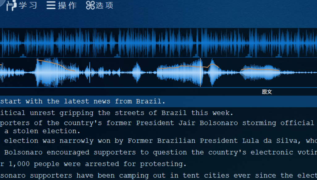 当然如果想要自己定义学习材料,完全可以自己制作课件。我们可以先在网上找到合适的音频或者视频文件,当然最后有字幕文件,导入系统后就可以跟读学习英语了。
